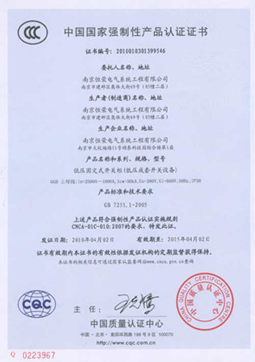 低壓抽出式開(kāi)關(guān)柜CCC認(rèn)證